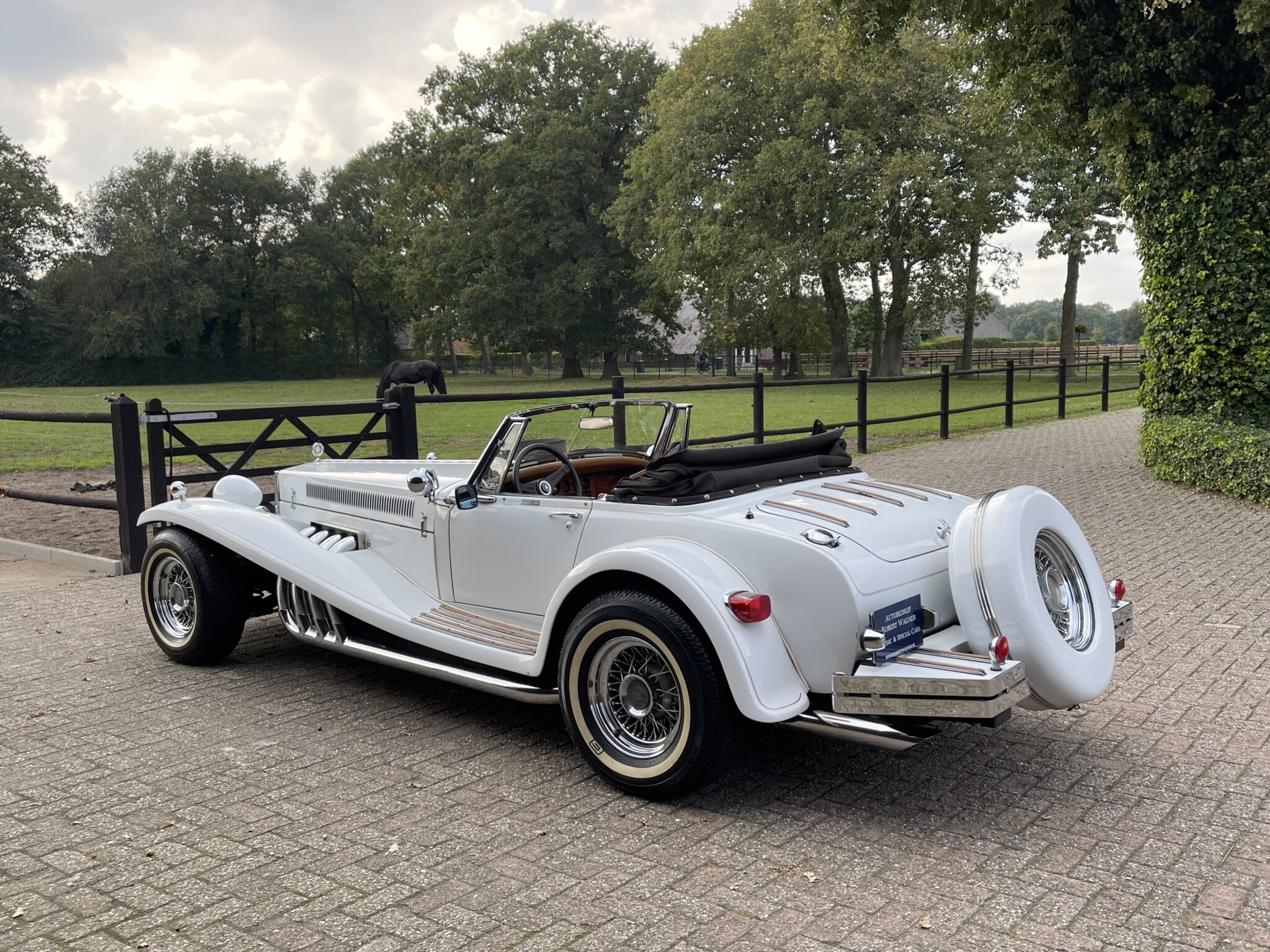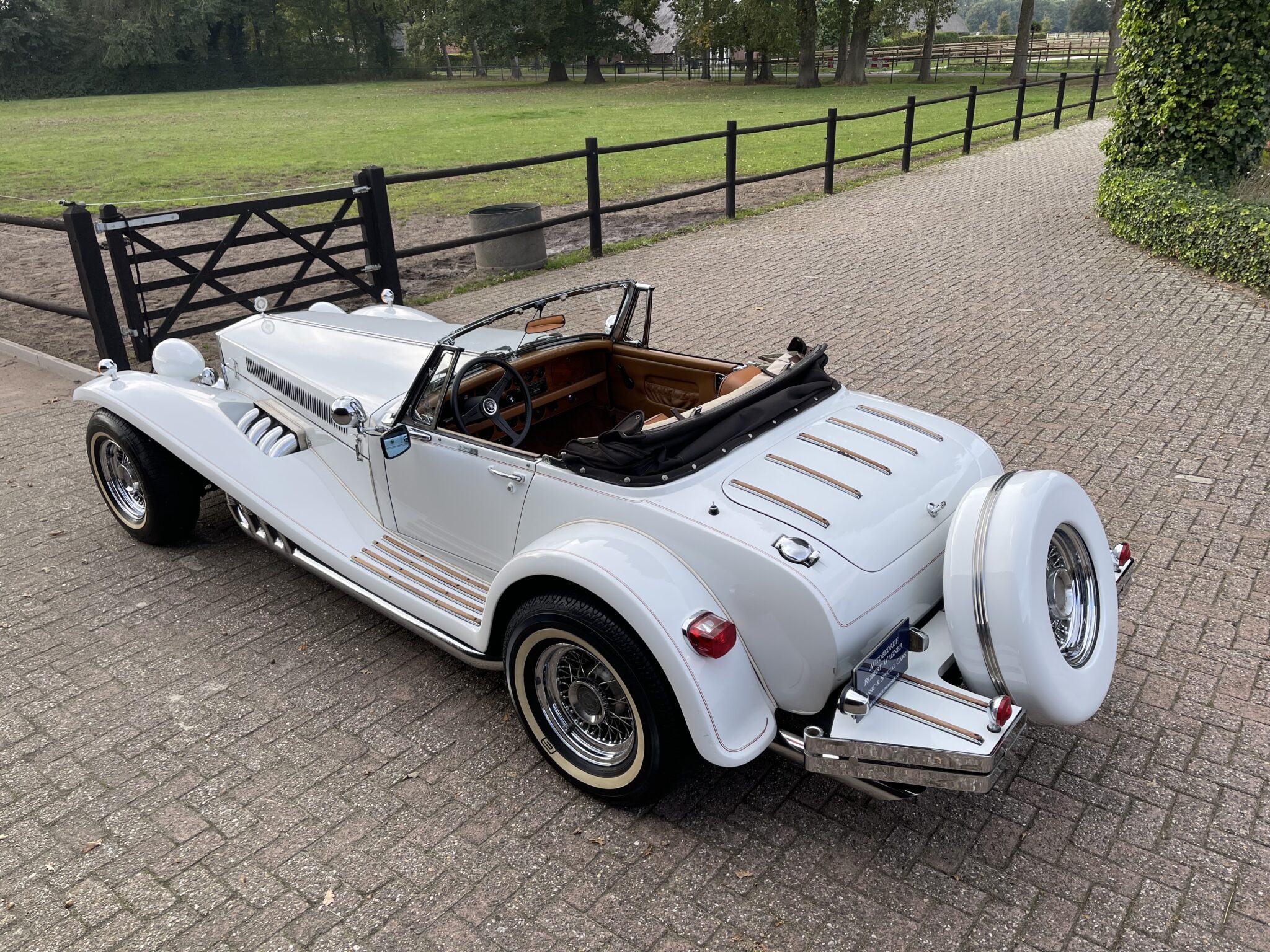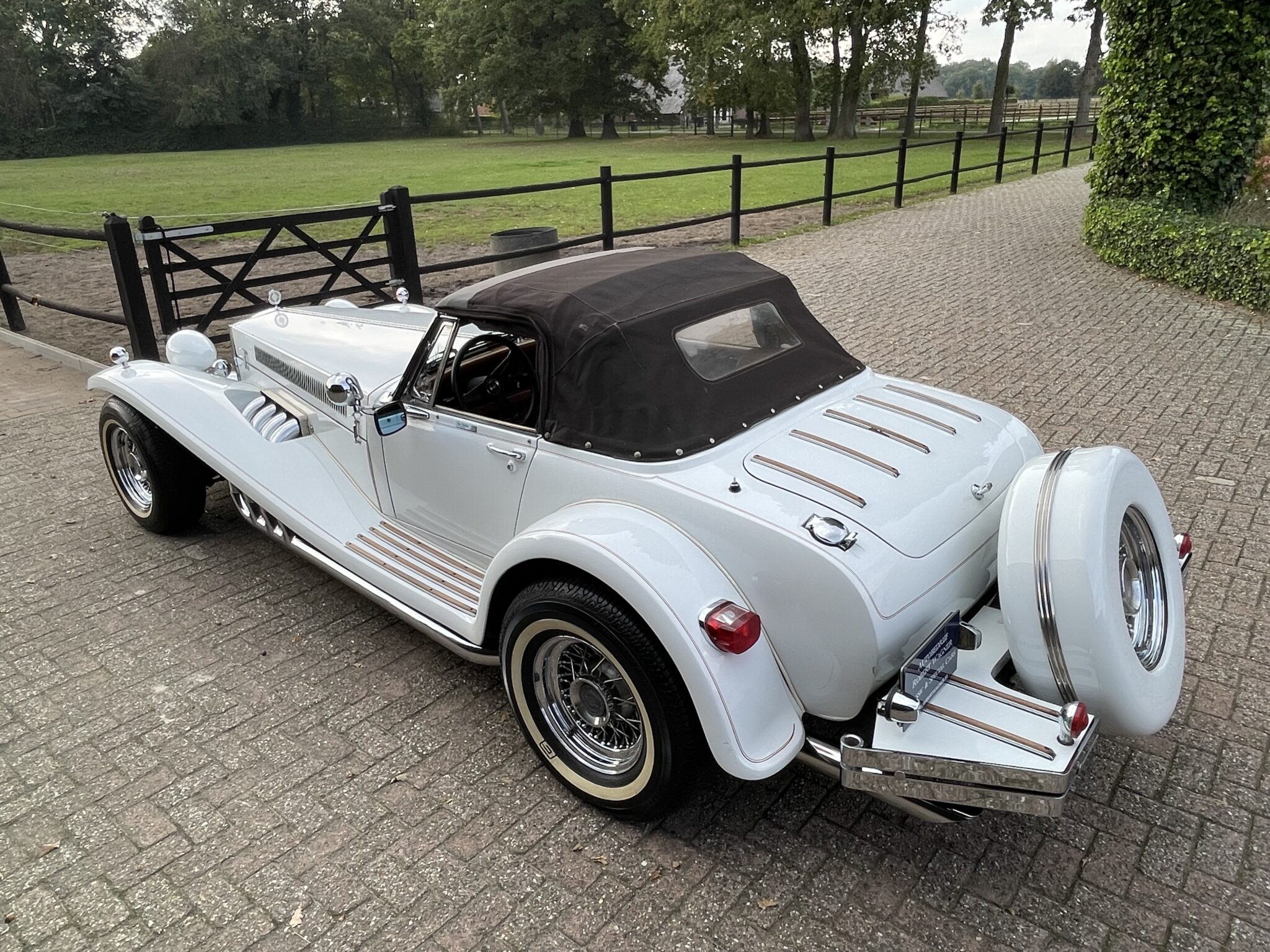 De Clenet Roadster heeft een Nederlands kenteken en is wegenbelasting vrij